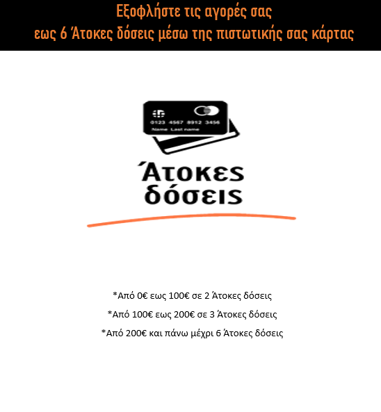 Πραγματοποιήστε τις αγορές σας στο κατάστημά μας εως έξι άτοκες δόσεις μέσω της πιστωτική σας κάρτας!